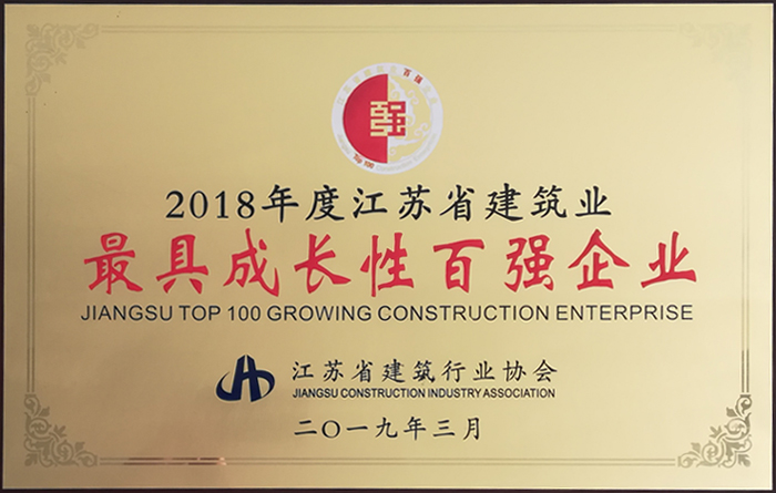 2018年度江蘇省建筑業(yè)最具成長(cháng)性百強企業(yè)