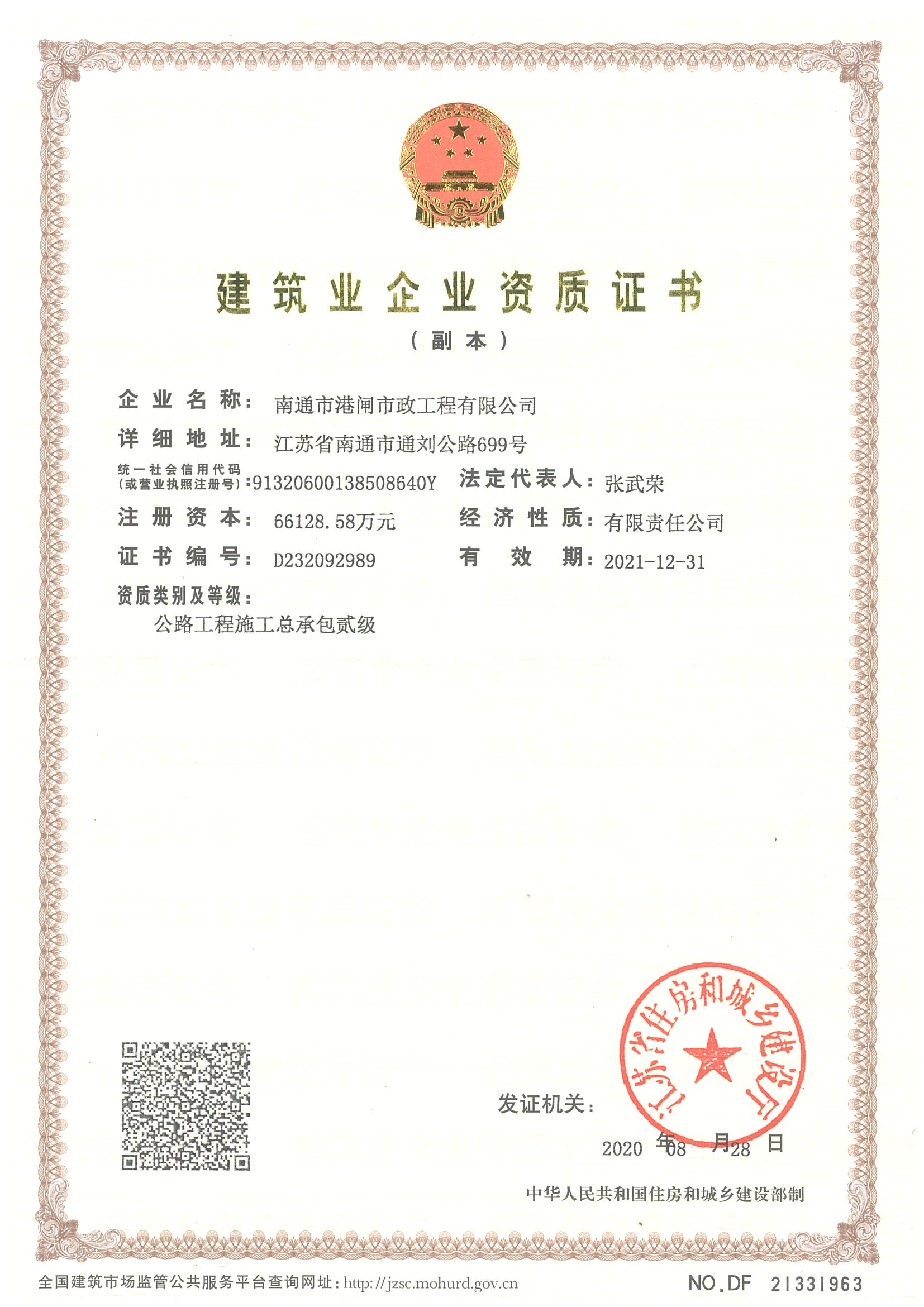 建筑業(yè)企業(yè)資質(zhì)證書(shū)(建筑工程施工總承包貳級、公路工程施工總承包貳級)