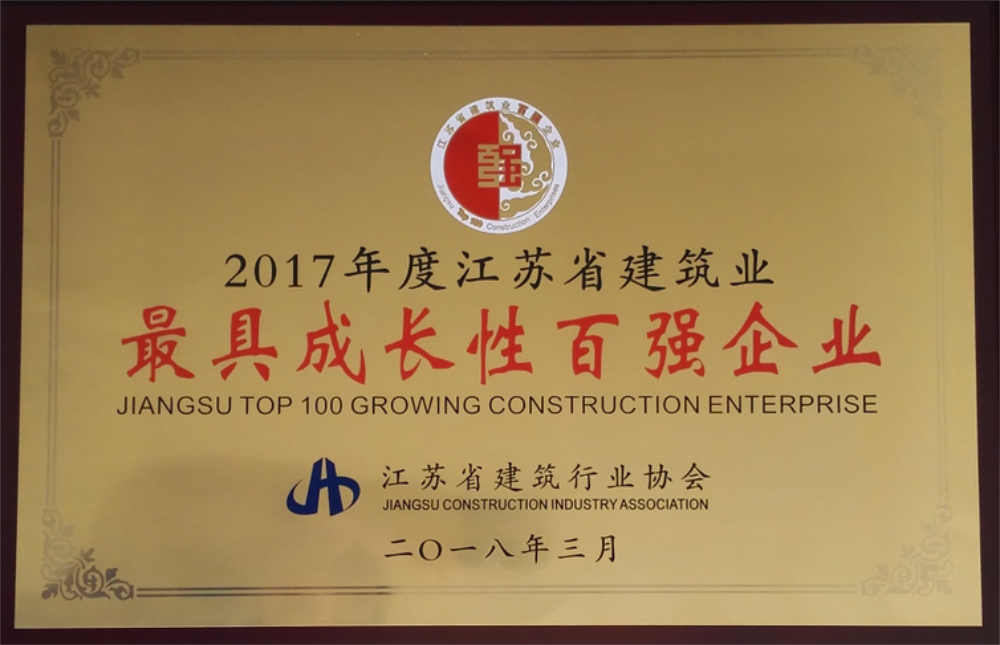 3月28日上午,江蘇省建筑行業(yè)協(xié)會(huì )2018年會(huì )暨2017年度江蘇省建筑業(yè)“雙百強”企業(yè)評價(jià)排名發(fā)布會(huì )在南京隆重舉行。會(huì )上發(fā)布了2017年度江蘇省建筑業(yè)“雙百強“企業(yè)、“三優(yōu)”單位及個(gè)人名單的決定并授牌。我公司榮獲“2017年度江蘇省建筑業(yè)最具成長(cháng)性百強企業(yè)”稱(chēng)號,董事長(cháng)張武榮被評為“2017年度江蘇省建筑業(yè)優(yōu)秀企業(yè)經(jīng)理”。
