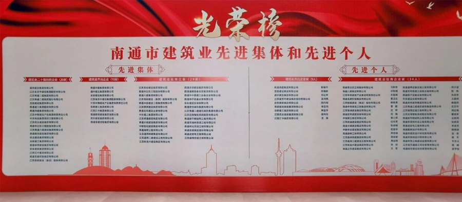 會(huì )議通報了《全市建筑業(yè)先進(jìn)集體和先進(jìn)個(gè)人名單》,我公司獲評“南通市建筑業(yè)優(yōu)秀企業(yè)”、董事長(cháng)張武榮獲評“南通市建筑業(yè)優(yōu)秀企業(yè)家”光榮稱(chēng)號。