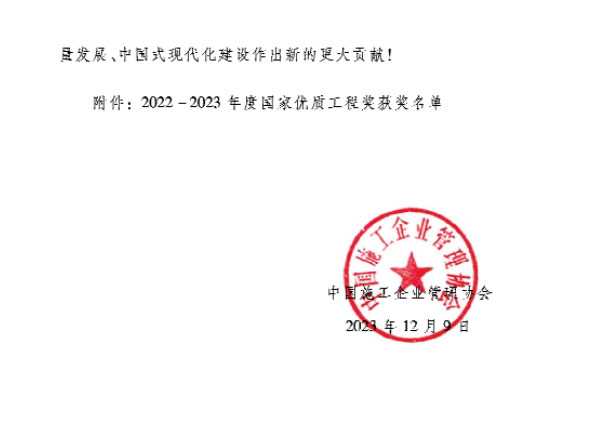 近日,中國施工企業(yè)管理協(xié)會(huì )發(fā)布2022-2023年國家優(yōu)質(zhì)工程獎名單,我公司參建的江海大道東延(綜藝集團東-揚子江路)工程登榜。
